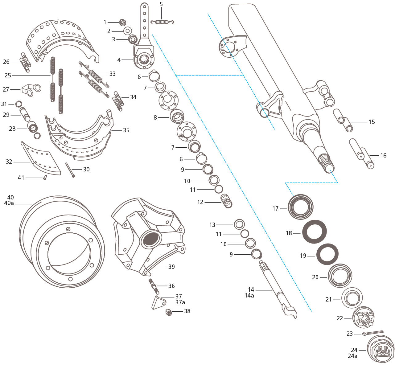 | 21 | AP0635 | Bearing Dust Cover Outer | 41 | AP4717 | Rivet - Brake Lining |