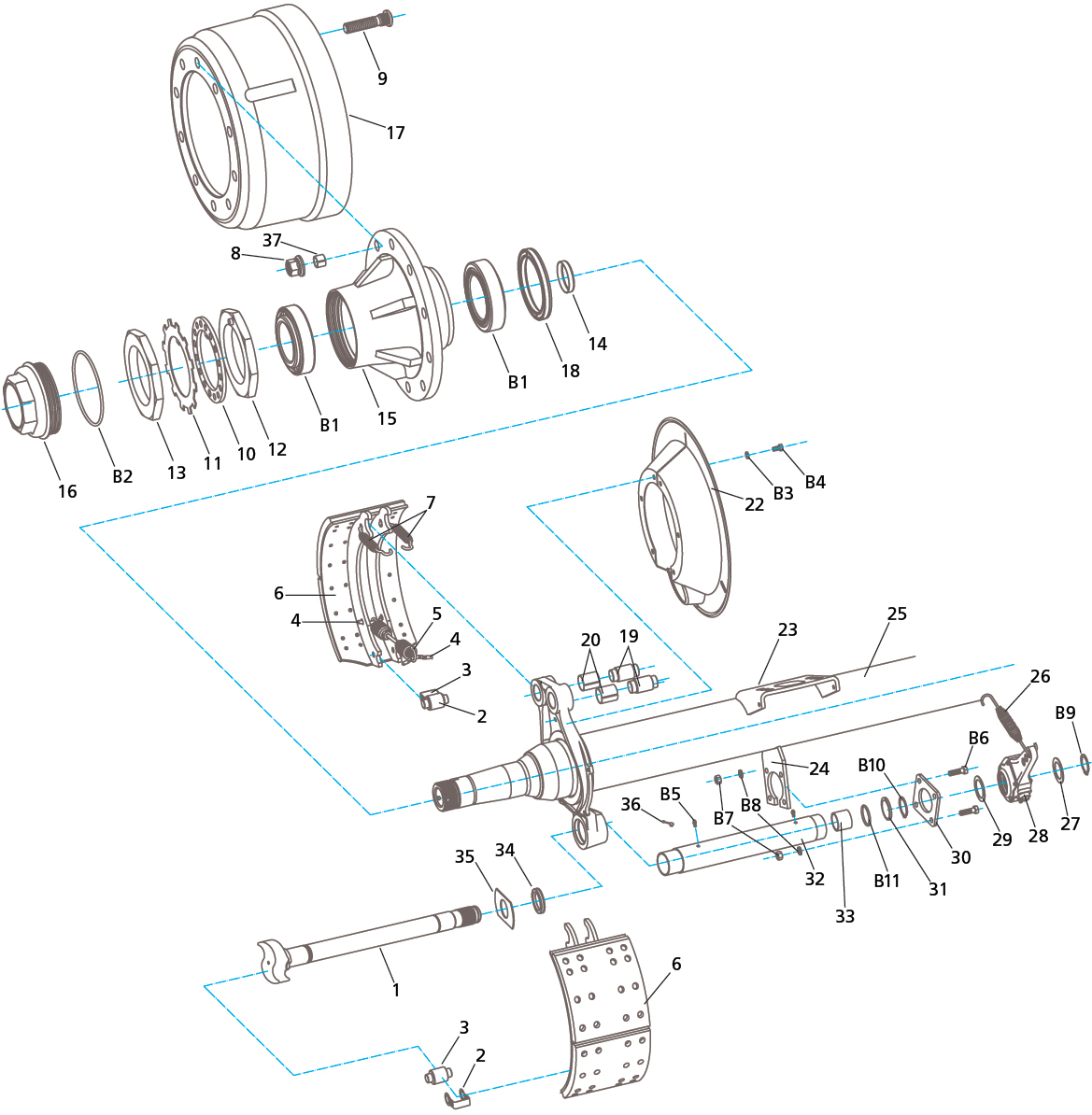 | 3 | ** | Brake Shoe Roller | 25 | Axle Beam | ||
